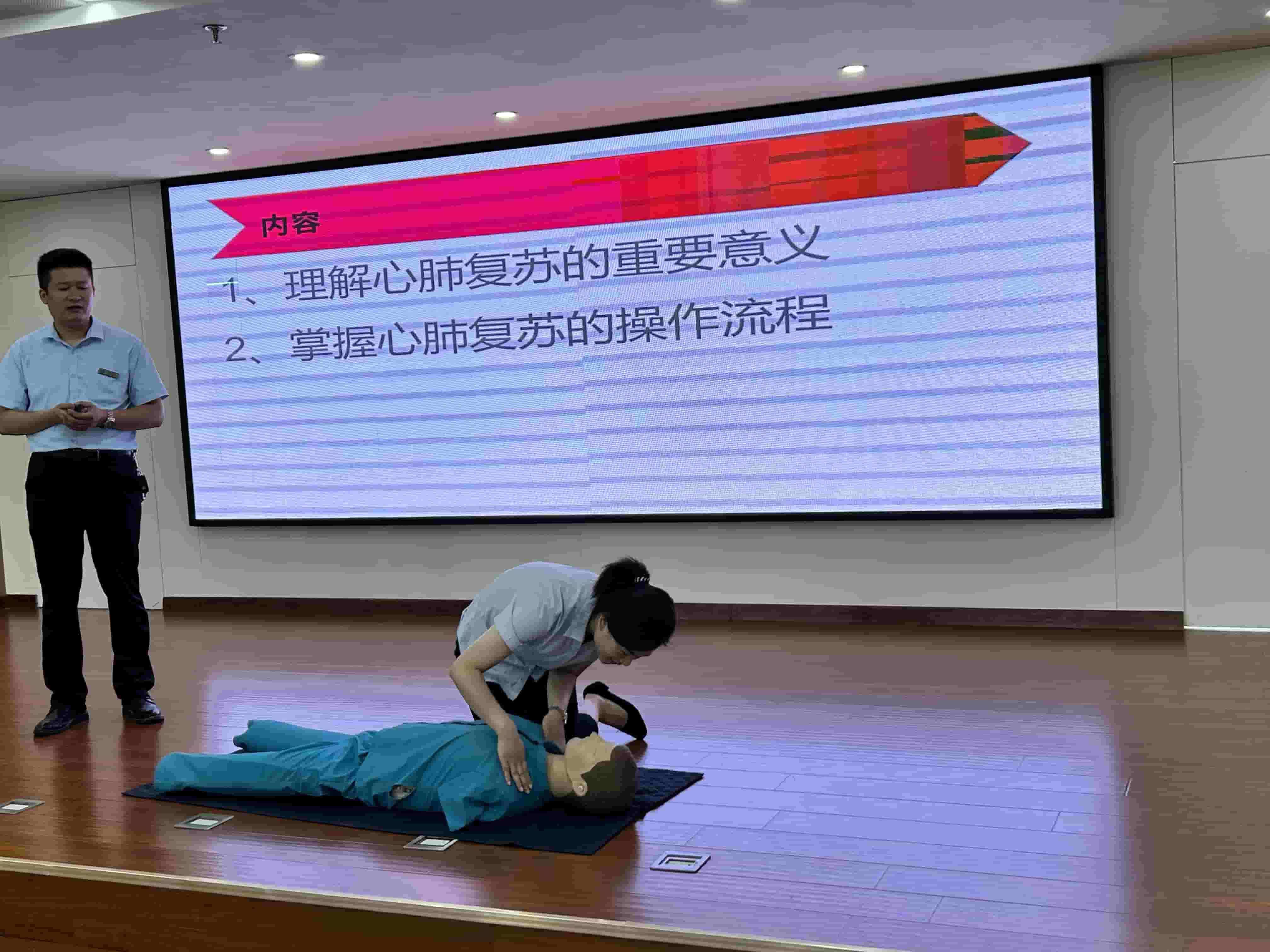 开启“安全生产月”宣传通道,普及安全防控知识,根据项目特点,开展消防演练、应急疏散、溺水救援、电梯救援、心脏复苏等各类安全救援演练,提高员工应急处置能力,强化各工种协同防控技能。