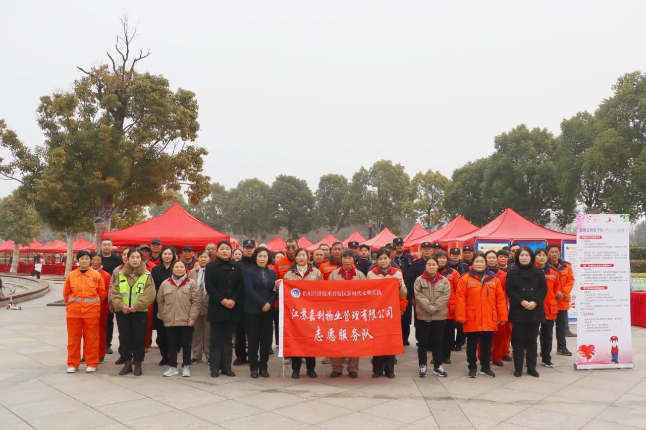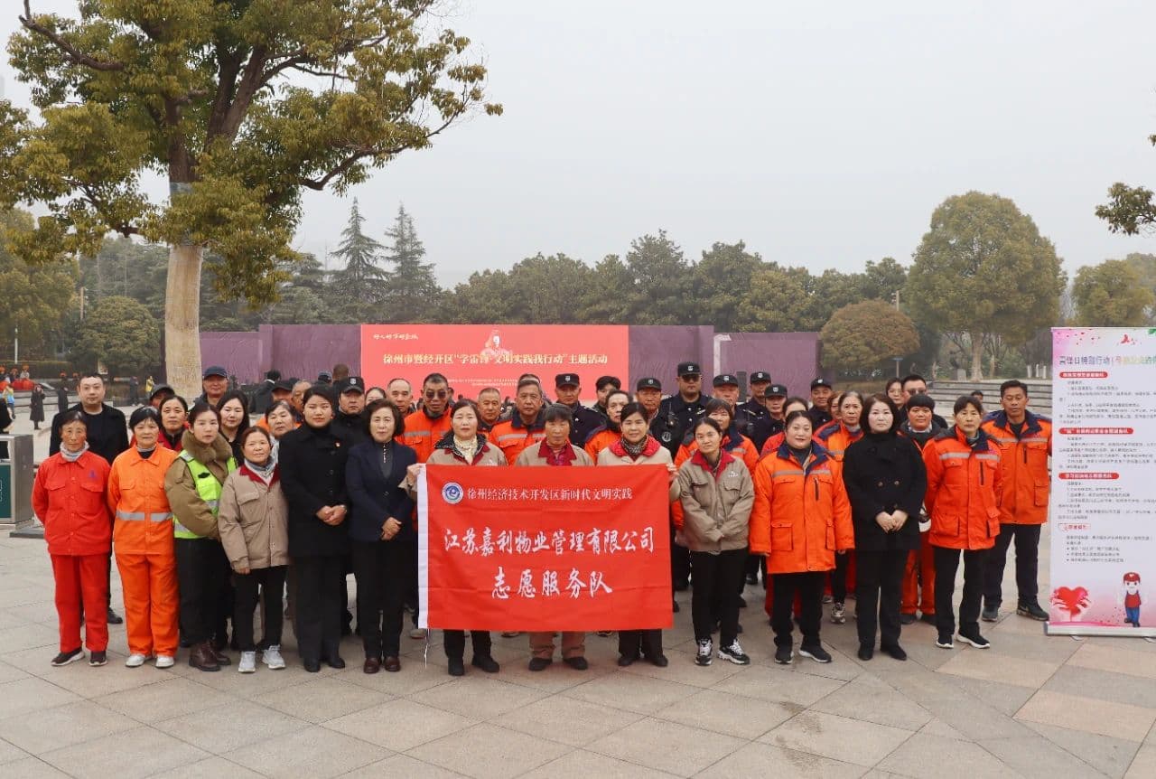 3月1日上午,徐州市暨经开区“学雷锋·文明实践我行动”主题活动启动仪式在美丽的金龙湖畔拉开帷幕。作为文明单位代表,嘉利物业公司由杜总、副总经理岳崇良带队,组织40名志愿者及一线员工代表参与活动,以实际行动践行雷锋精神,展现文明单位责任担当。