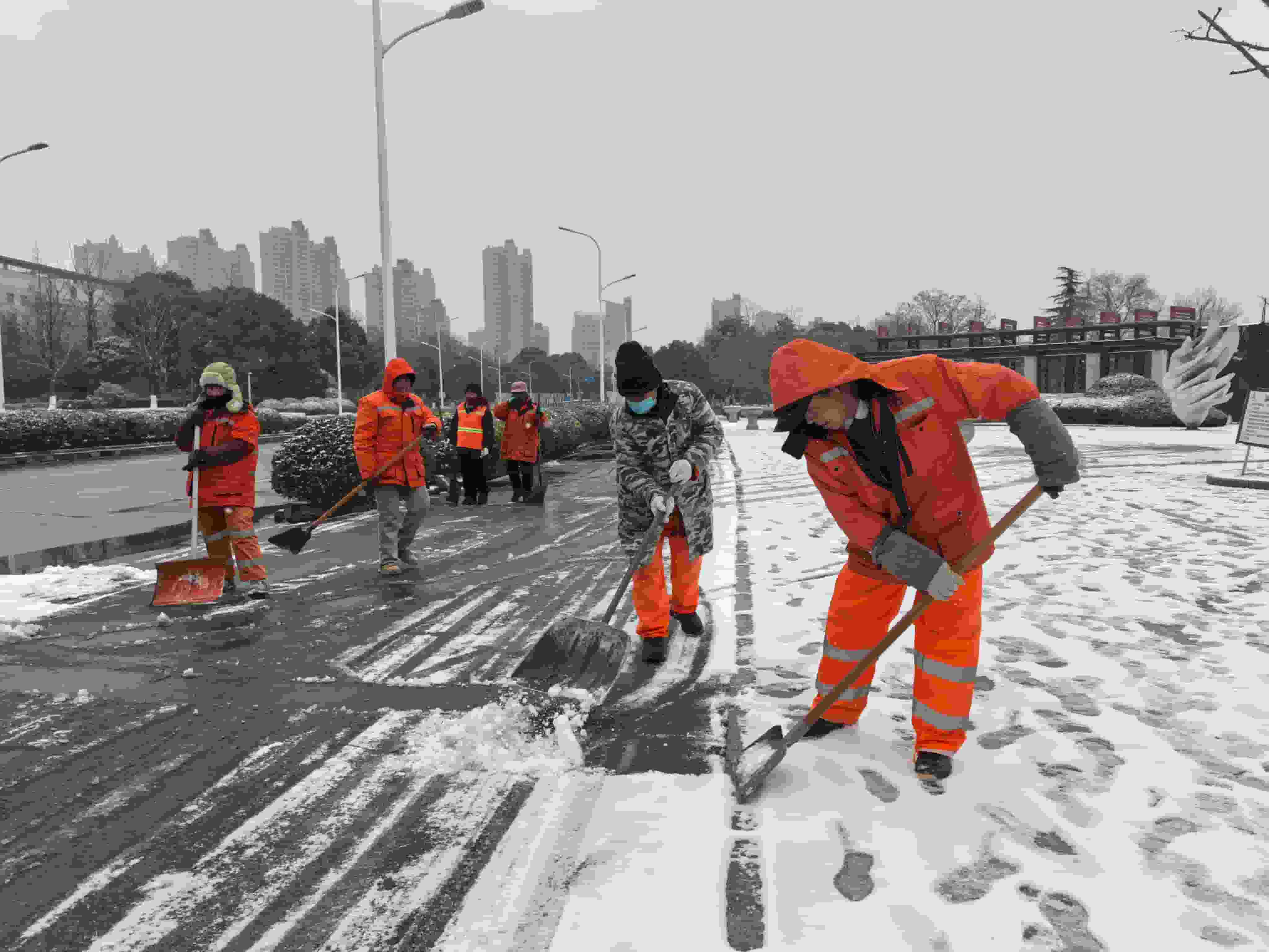 受持续低温降雪天气影响,经开区道路积雪结冰,给市民出行带来诸多不便。嘉利公司积极响应上级领导工作部署,迅速响应、以雪为令、闻雪而动,全力投入除雪防冻保畅通、保民生工作中。